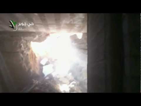 سقوط صاروخ على أحد الملاجئ 2013/2/26 دمشق جوبر/e