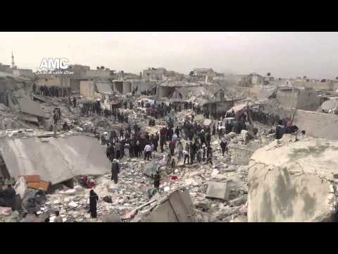 ادلب:كفرسجنة اثار قصف المروحي على البلدة 23-2-2013.