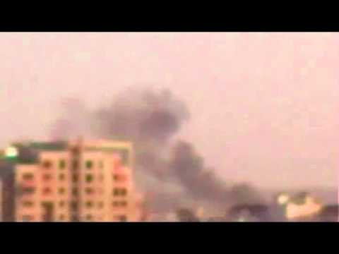 المعرة :: لحظة سقوط أحد القذائف على البلدة 25-02-2013